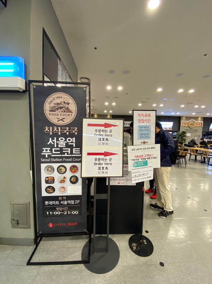 드디어 서울역 맛집 서울역 푸드코트 칙칙쿡쿡 도착! 우와 자리도 엄청 넓고 위생 철저히 한다는 안내판